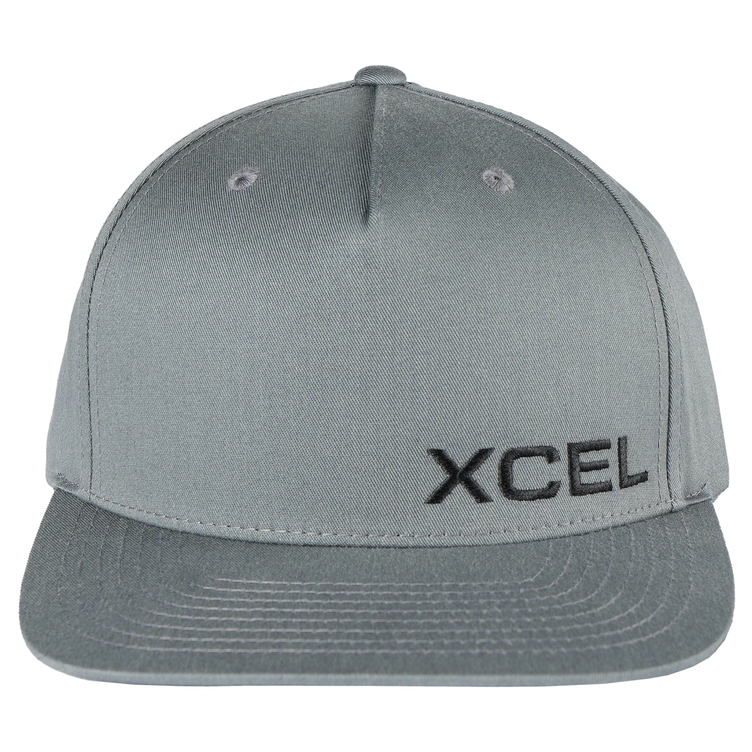 Our Boxed Snap Back hat features an embroidered offset Xcel logo, a twill flat bill, and an adjustable snapback.