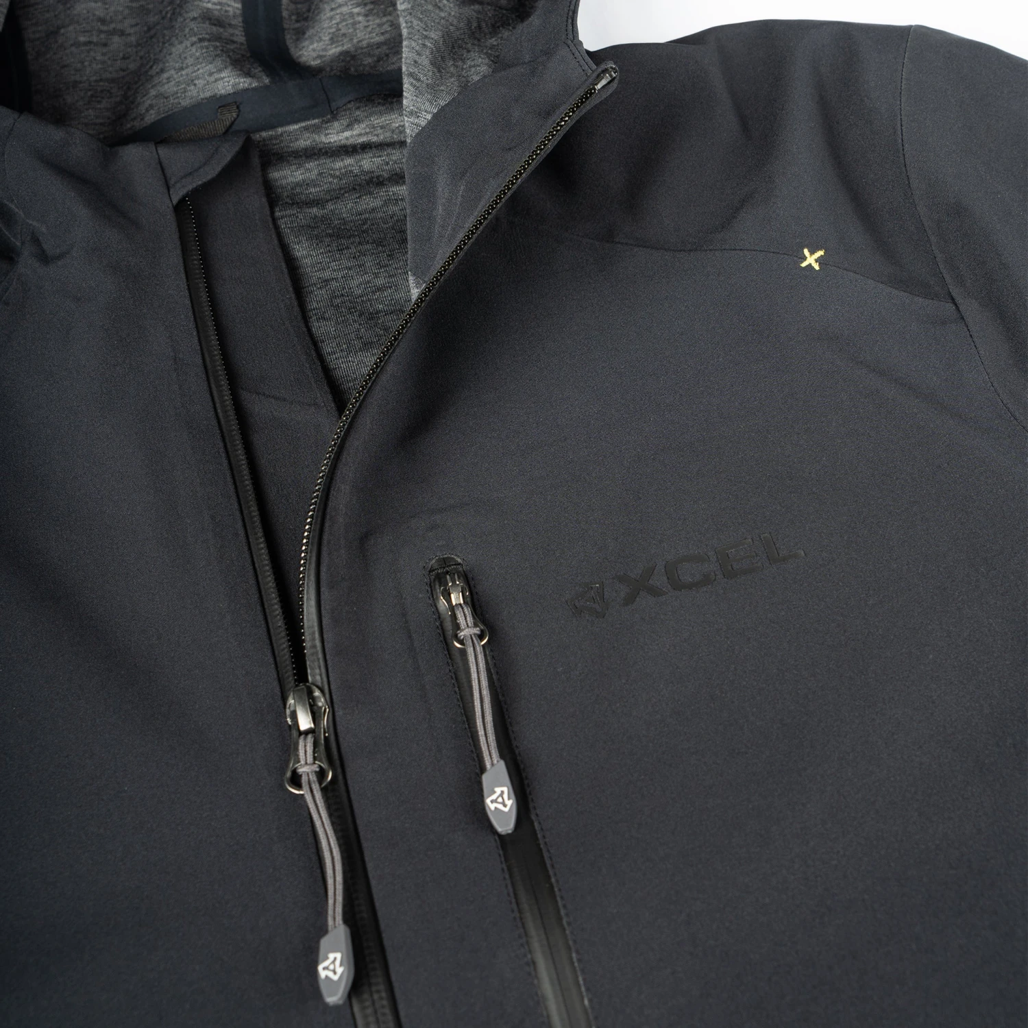 The Drylock waterproof jacket for wind, rain, and snow is the most technical jacket that Xcel offers. The stretch performance, waterproof materials, and zippers meet the Drylock standard. The engineered design with custom fitted hood keeps the elements out and the warmth in.