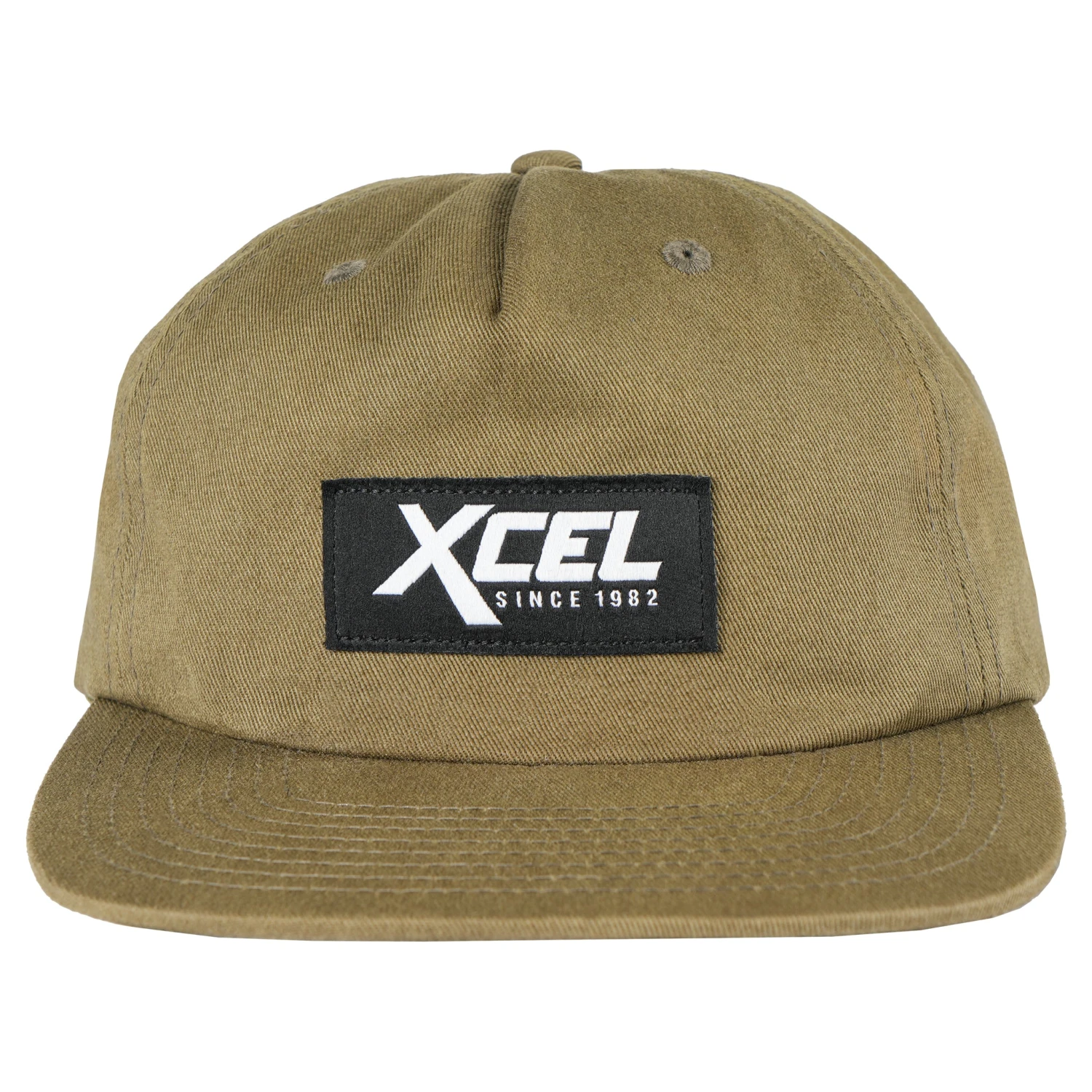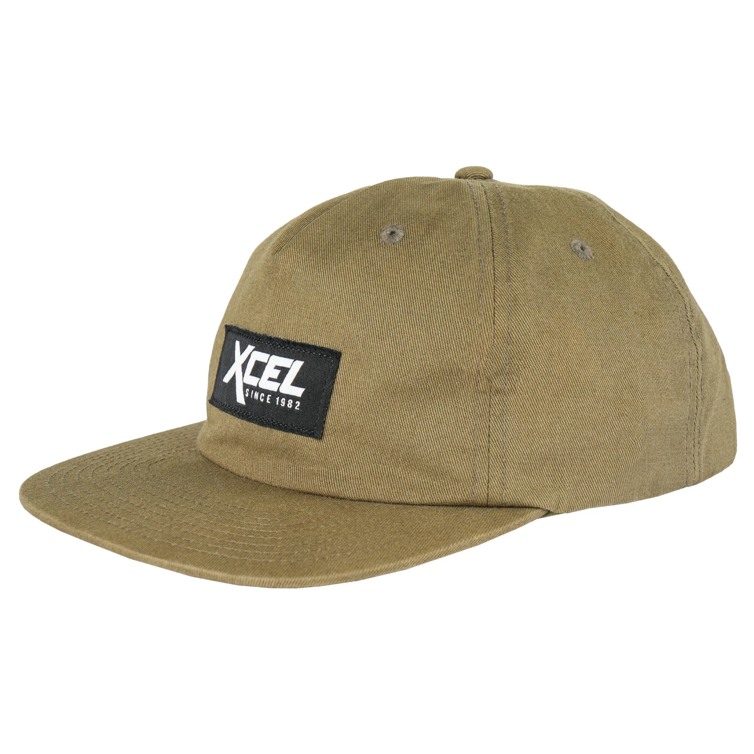 Our washed canvas Retro hat features an embroidered patch logo and a leather strap with a metal press.